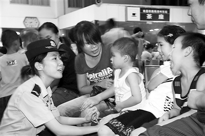 在构建和谐警民关系中,她积极主动为进出火车站的旅客群众办好事、解难事,先后收到锦旗6面。日前,在福建省第二届全省“优秀女警官、优秀女检察官、优秀女法官和优秀女律师”表彰大会上,吴小清被授予“优秀女警官”、“巾帼建功标兵”荣誉称号。图为吴小清热情为民排忧解难的场景。 甘洋和 钟杨清 摄