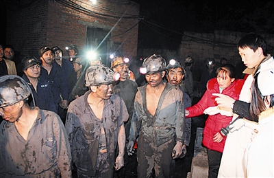 12月7日15时许,位于重庆市渝北区古路镇的畅达煤矿发生透水事故,当班10名工人,除3人刚刚离开矿井大巷外,其余7人全部被困。经过救援人员的奋力营救,被困井中12小时的7名矿工于8日凌晨3时左右全部获救。新华社发(刘宏摄)