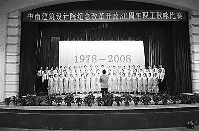日前,中南建筑设计院举行职工歌咏比赛,纪念改革开放30周年。图为该院职工歌咏比赛现场。