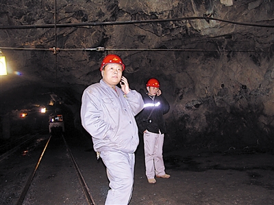 图:矿工在井下340米以内的任何地方都可以通过手机与外界联络。 米红军 摄