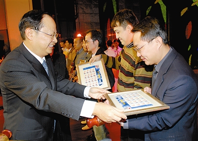 中国移动通信集团公司总裁、党组副书记王建宙为奥运“支援者”先进代表颁奖