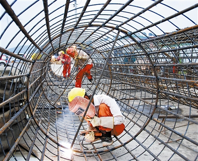 中铁三局施工人员焊接钢筋笼 孙清华摄