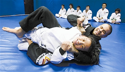 12月9日,一种新颖的格斗技击项目——。图为一位巴西柔术运动员在辅导中国小朋友。新华社记者 凡军 摄