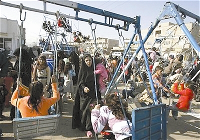 局势至今仍未稳定的伊拉克迎来了伊斯兰教传统节日宰牲节。图为12月9日在首都巴格达一家游乐园里,家长陪伴着孩子们正在无忧无虑地荡秋千。吉平 供图