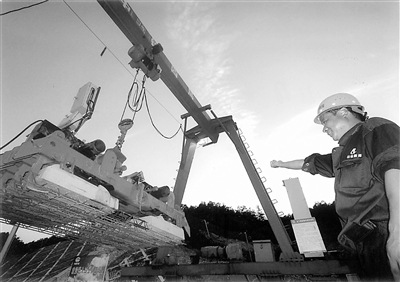 武(汉)至广(州)铁路客运专线全长968公里,是我国铁路“四纵四横”快速客运网的重要组成部分,2010年建成通车后,从武汉坐火车到广州只需4小时,较目前整整缩短了7个小时。图为中国中铁的建设者正在精心铺设无砟轨道轨枕。 李慧智 肖勇 摄