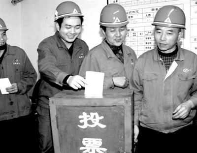 12月10日,重庆能源集团南桐矿业供应分公司装卸班开始评选2008年分公司先进、标兵,18名员工来到班组会议室,为让自己心服口服的人投了郑重的一票。过去年终评先,都是上级领导内定提名,然后由大家举手表决。有人对提名者即便不同意,因碍于情面也违心举手,但事后却对评先意见很多。今年,该班改变评先方法,让员工投票评选自己认可的人,大家认为这才称了自己的心。 万梅 程佳丽 摄