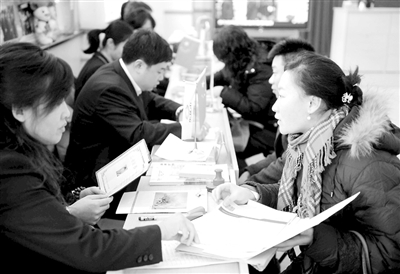 12月20日,北京市崇文区东花市街道的工作人员在审核一位报名者的资料。