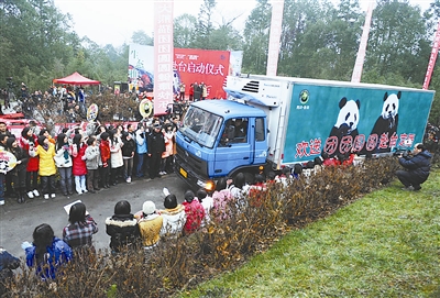 今日清晨5时许,四川雅安碧峰峡基地就忙碌起来。“团团”“圆圆”在吃了家乡最后一顿早餐——胡萝卜和窝窝头后,7时20分,工作人员将它们装进专门的运输笼,并抬上大卡车。上午8时,“团团”“圆圆”赴台启动仪式在雅安碧峰峡大熊猫基地举行,400余名当地民众自发参加。“团团”“ 圆圆”的饲养员瞿春茂在转运笼前与它们告别时,流下惜别的泪水。她说:“我希望它们在台湾过得好。”
