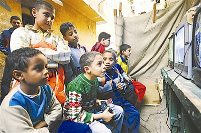 12月22日,一些埃及儿童在位于埃及首都开罗老城区的一个露天游戏厅玩电子游戏。目前埃及约有20%的人口生活在贫困线以下。新华社记者 张宁 摄