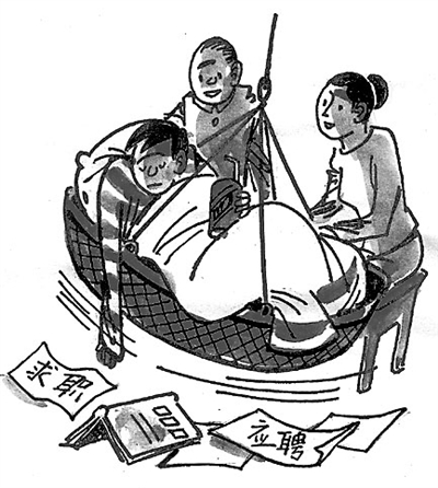 据《新闻晚报》报道,在上海日前举行的一场高校联合招聘会上,一些毕业生表示,父母并不急着让他们赚钱养家,有的还建议他们先待业结婚,等就业形势好转再找工作。
