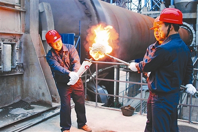 面对金融危机袭击,浙江虎山集团积极采取应对措施,与中国建材集团携手合作,实现产品转型升级。日前,在生产线点火仪式上,虎山集团公司董事长张剑星宣布:“请一线员工点火!”三名一线员工奔向了点火炉。参加点火仪式的员工感动地说:“这是企业‘冬天里的一把火’!” 毛朝阳 杜渐 摄
