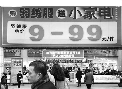 12月25日,重庆街头,到处都是商家血拼价格、疯狂促销的广告。为刺激消费,赚取人气,今年年底重庆各大商场打折、降价等促销活动比往年都猛。姜纯 摄