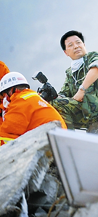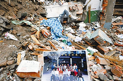 5月17日17时13分摄于汉旺镇东汽中学地震废墟。于文国 摄