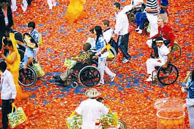 9月17日21时36分,残奥会的圣火熄灭后,各国残奥运动员踩着北京的红叶缓步退场。 于文国 摄