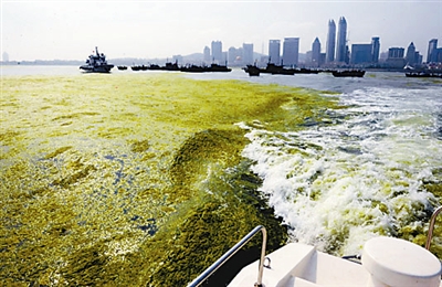 6月27日15时23分,位于青岛的奥帆赛基地受到海苔潮袭击,青岛全市动员最后保证了比赛正常进行。于文国 摄