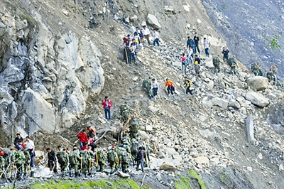5月15日9时07分,首批从路陆赶往灾区的抗震救援部队正在开往映秀镇的途中。 于文国 摄