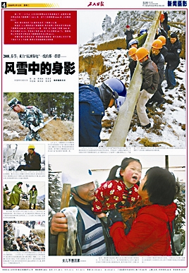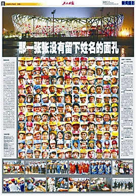 当大喜大悲、悲喜交集的2008年即将过去的时候,在全国各行各业都在年终盘点的时刻,回望一年来的工作,我们战战兢兢地捧出了由摄影部7位图片编辑和摄影记者完成的10个新闻摄影专版及20个新闻摄影瞬间向读者汇报。我们手中的这些版面和照片,都是我们在今年的不同时期、不同新闻事件发生后拍摄和编辑的,比方说,由本版刊登的摄影专版《来自抗击冰雪一线那一群群——风雪中的身影》、《深圳外来妹——一串故事一本书》、《那一张张没有留下姓名的面孔》、《不屈的脊梁》、《人性之美》、《震区百姓泪送子弟兵》、《他们都是世界冠军》、《携手飞翔》等等。比方说,我们拍摄的新闻照片《“和谐2008”》、《10万人涌入招聘会》、《永久的伤痛》、《孩子手中紧握着的笔》、《汶川挺住》、《笛声道情》、《职工拉拉队》等等,等等……这些作品在发表的时候都分别受到了读者和专家的肯定,有的还在读者中引起了较好的反响。更让我们难以忘怀的是他们有的用手机信息、有的写文章、有的用电话等方式情真意切地给予了我们鞭策和鼓励。