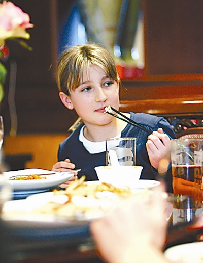12月25日,一名德国女孩在柏林的“大明”中餐馆吃中餐过圣诞。圣诞节在西方是合家团圆的节日。每年的平安夜,德国人都是在家吃“团圆饭”,但第二天,很多德国人会选择去中餐馆,尝尝中式“团圆饭”。尽管今年德国遭遇了金融危机,但据当地的中餐馆经营者反映,在圣诞假日期间,中餐馆的生意并没有受到影响。新华社记者 罗欢欢 摄