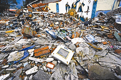 “5·12”大地震在不到1分钟的时间里,使东汽公司的厂房变为一片废墟,许多具有世界先进水平的技术专家遇难。这是东汽核心技术部研究中心大楼倒塌后的废墟。 本报记者 于文国 摄