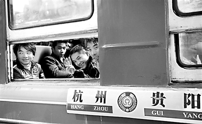 12月25日下午5时30分,2009年全国铁路春运增开的第一列临客列车——杭州至贵阳L99次,满载1400多位乘客,从杭州站始发开往贵阳。乘客中绝大多数是在浙江务工的返乡农民工。 金友 摄