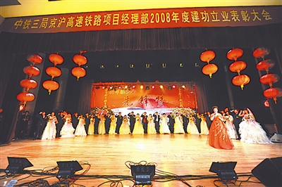 本报讯 12月28日,中国中铁三局工会和京沪高速铁路项目经理部在镇江隆重表彰10个“工人先锋号”集体和30名先进个人,启动“百日大干保架梁”活动,确保所属标段控制性工程进度。在表彰联欢会现场,公司党委和工会还为16对新人举办了别开生面的集体婚礼,这意味着他们的蜜月和春节都将在工地上度过。