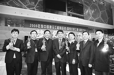 12月26日下午,由中国建筑业协会主办的2008年度中国建设工程鲁班奖(国家优质工程)颁奖大会在国家游泳中心隆重举行,由北京城建集团总承包的国家体育场(鸟巢)、北京奥林匹克篮球馆、国家体育馆、首都机场三号航站楼、国家大剧院、北京奥林匹克公园(B区)奥运村等全国98项工程问鼎这一奖项。据悉,北京城建集团6项奥运会重点工程荣获这一殊荣,成为全国本年度获奖最多的企业。黎方益 摄