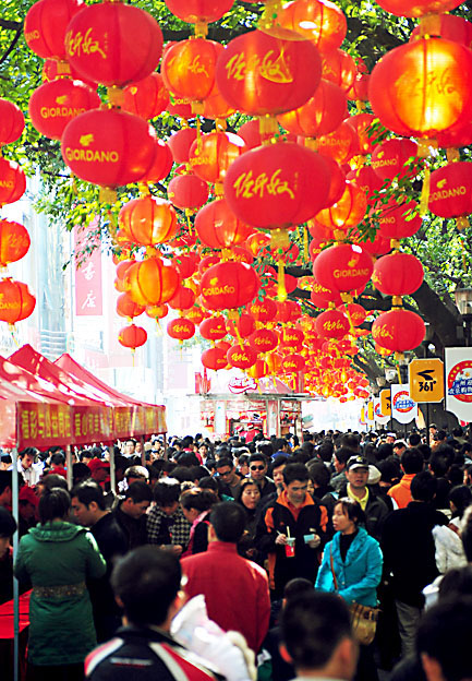 1月1日,广州市北京路步行街上游客熙熙攘攘。当日,广州阳光明媚,市民纷纷走上街头感受节日的喜庆气氛。新华社记者 卢汉欣 摄