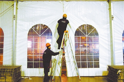 站前广场搭临时大棚为出行旅客遮风挡雪