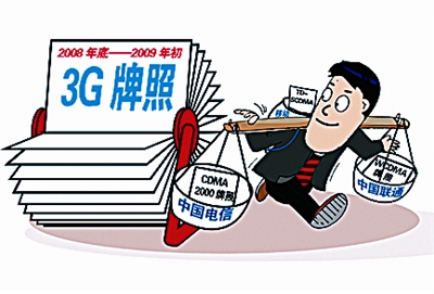 按照工业和信息化部提交的讨论报告材料,政府一共将发放三张3G牌照,即对中国移动发放TD-SCDMA这个具有自主知识产权技术标准的牌照;对新组建的中国联通发放WCDMA牌照,对中国电信发放CDMA2000牌照。