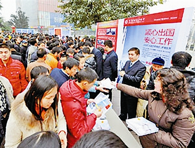 重庆市外经贸委负责人告诉记者,此次招聘会举办当天已有4700人报名竞聘。据估计,现场前来咨询的应聘者有上万人。根据计划,春节后,还将在返乡农民工比较集中的区县,开展一系列“走出国门”现场招聘活动,为返乡农民工提供更多的海外就业机会。