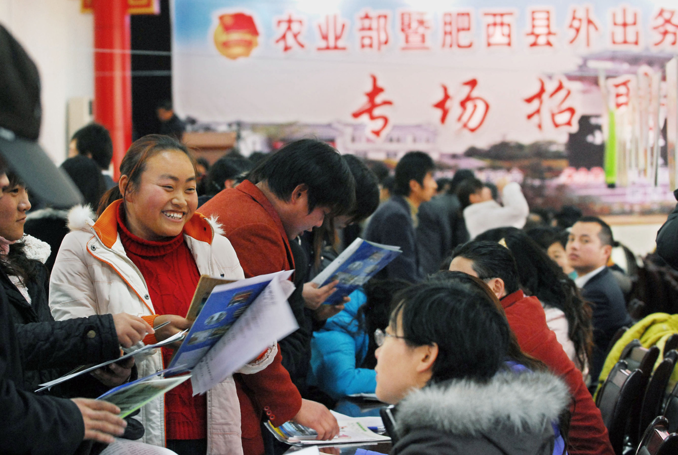 2008年12月24日,由农业部和安徽省肥西县委、县政府联合举办的“外出务工返乡人员专场招聘会”在肥西县举行。此次招聘会是肥西县委、县政府为陆续返乡的外出务工人员,下岗、失业人员,农民工以及企业提供服务而举行的。来自合肥地区的70多家用人单位提供了4000多个就业岗位,吸引了众多应聘者。 王从启 摄