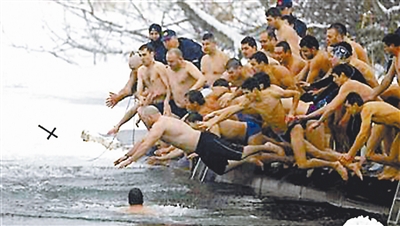 1月6日在保加利亚首都索非亚,东正教徒正在参加主显节庆祝活动。图为男子们跳入冰冷的湖水中夺取牧师投掷的十字架,以祈求新年健康平安。吉平 供图