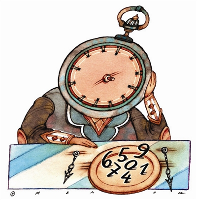 现代社会当中,人人都把时间比作金钱,真的可说是寸金好比寸光阴啊!但超负荷的时间安排真的就那么人性化吗?那些背着沉重书包的小学生,家长已经为他们规划好了上课以外的一切“空闲”时间、美术、音乐、外语……走马灯似地驱遣着这些“惜时如金”的小朋友们;那些无论上班、吃饭、开车、上课,甚至睡觉和上厕所都手机不离耳边的辛苦白领们……这个时代,我们每个人都似乎成了时间这个完美机器上运转不息的齿轮,时间成了绝对的主宰,却同时让我们失去了对它的亲切感。