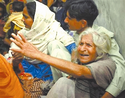 图为一位老人因为有亲人在大火中丧生而悲痛万分。 肖捷 供图