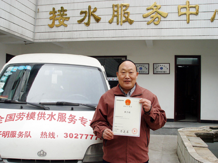 李子明现为淮北供水总公司职工,30年如一日服务在供水行业,1997年,他率先在淮北发起“双休日义务便民活动”,被群众誉为“活着的雷锋”,他本人也被评为全国劳动模范、全国职工职业道德十佳标兵等荣誉称号。2003年,该公司开通了“李子明便民服务热线”,深受市民好评。孟德强 摄