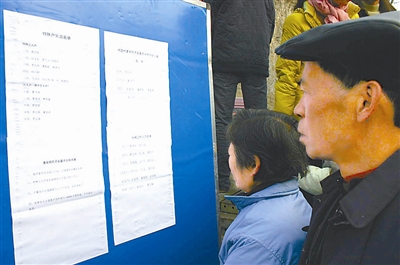 1月11日,都江堰市向峨乡棋盘村村民正在查看分房工作的相关公示。