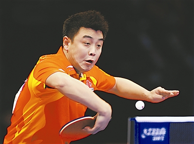 1月11日,在长沙举行的2008世界乒乓球总冠军赛男单决赛中,王皓4比1战胜队友王励勤,获得冠军。 新华社记者 李尕 摄