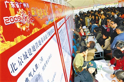 广州市从当日起开展“2009新春就业送温暖活动”,有52家企业进场招聘,提供1500个就业岗位。同时,“广州成都远程见工”网络系统也在当日开通,为四川打工者在广东找工作开辟了一条方便快捷之路。