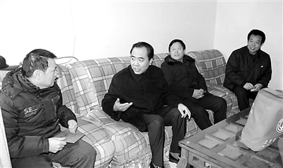 1月8日,北京城建建设公司党委书记、董事长刘海山一行来到位于河北省三河市的城建新村,为85户特困和困难职工送去慰问金和慰问品,并向他们表示节日的祝福。王国海 摄