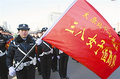 1月11日是2009年春运的第一天,一支精神饱满、英姿飒爽的“三八”女警值勤队亮相于太原火车站广场。