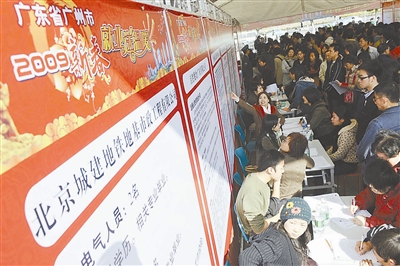 1月12日,多家企业在“广州新春就业送温暖活动”招聘会现场进行面试,此次有52家企业进场招聘,提供1500个就业岗位。同时,“广州成都远程见工”网络系统也在当日开通,为四川打工者在广东找工作开辟了一条方便快捷之路。 新华社记者 壮锦 摄