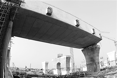 全国首孔鱼腹式2600吨特大32米连续箱梁近日在广州新客站建设工地建成,该箱梁高4.42米,宽13多米。在中铁二十二局集团四公司项目经理陈耀华等领导班子带领下,专家和全体工程技术人员齐心协力,实现一次性持续浇筑30个小时,创造出我国铁路现浇梁新纪录。 武新才 蒋明清 摄