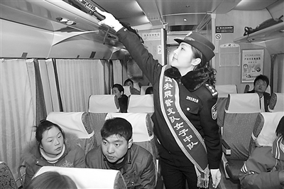 近日,西安铁路公安处根据岗位实际情况,选拔了16名具备一定工作经验的女警组成了西安首支女子乘警大队,担任 Z19/20次( 西安直达北京)、Z93/94次(西安直达上海)列车值乘任务,为春运服务。 新华社记者 都红刚 摄