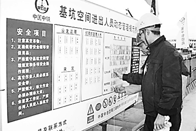 中铁四局天津地铁3号线经理部以创建“全国施工安全文明工地”为目标,先后制定了《安全责任制》等措施和管理办法,认真落实安全生产逐级负责制,将安全生产文明施工落实到人,先后荣获全国施工安全文明工地、天津市文明示范工地等。图为现场进出人员动态管理牌制度。 徐亚梁 李晓明 摄