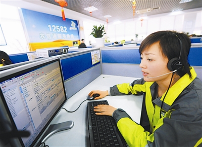 1月15日,呼叫中心的一位工作人员在与求职农民工进行在线沟通。