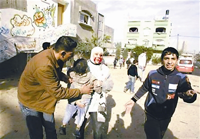 至1月15日,以色列进攻加沙地带已经进入第20天,战火已造成至少1033名巴勒斯坦人死亡,另有近5000人受伤。图为在加沙地带北部城市贾巴利亚,在空袭中受伤的巴勒斯坦人从家中逃离。肖劼 供图