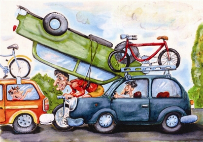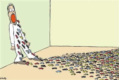 假日出游大塞车,这下单车派上了用场……可前提条件是你得是个大力士,背得动汽车才行!