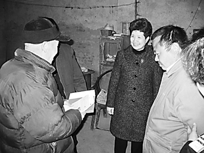 郑州铁路局郑州客运段工会在落实铁道部“三不让”承诺工作方案启动以来,着力构建“1+2”帮困新机制,全面实现困有所帮、难有所助、贫有所济、病有所医、亡有所补。如今,全段落实“三不让”承诺工作已初步形成了全方位、全时段的综合机制,使职工群众心中永远撑起了三把“温情伞”,成为和谐站段建设的一道亮丽风景。图为段工会主席文利平节日期间慰问困难职工。(刘峰罗晶摄)