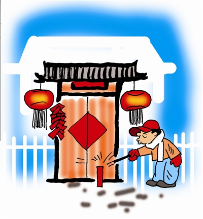 “爆竹声中一岁除,春风送暖入屠苏。千门万户曈曈日,总把新桃换旧符”,春天推着年,在寒风中缓缓前行,由远而近的是熟稔的乡音。道道桃符红光满面,杯杯热酒倾诉衷肠,远走他乡的人,背着行囊,默念着远方亲人的召唤,辗转南北,回到他们久违的家园。没有了羁旅他乡的牵绊,没有了“乡音未改鬓毛衰”的落寞,像一支支箭簇,将乡愁的箭矢精确无误地射向故乡的靶心。