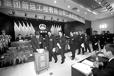 中国中铁一局新运公司大胆组织职工代表民主推荐公司领导后备干部,拓宽选人用人视野,建立适应市场经济的企业选人用人机制,有效调动了职工的主人翁意识,为实现企业进步与人才成长的和谐发展创造良好氛围。图为职工代表正在二届四次职代会上进行推荐投票。杜芳栋 党立红 摄